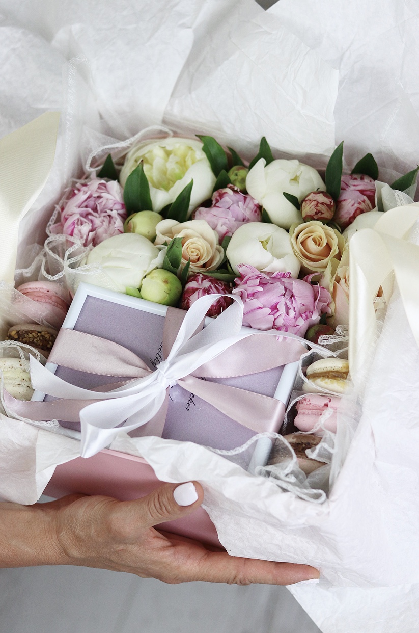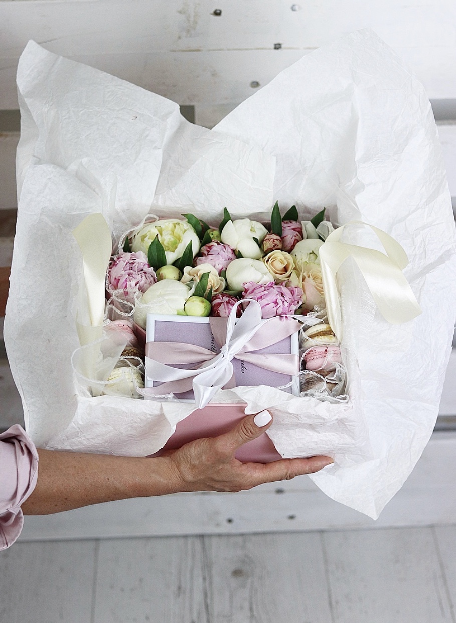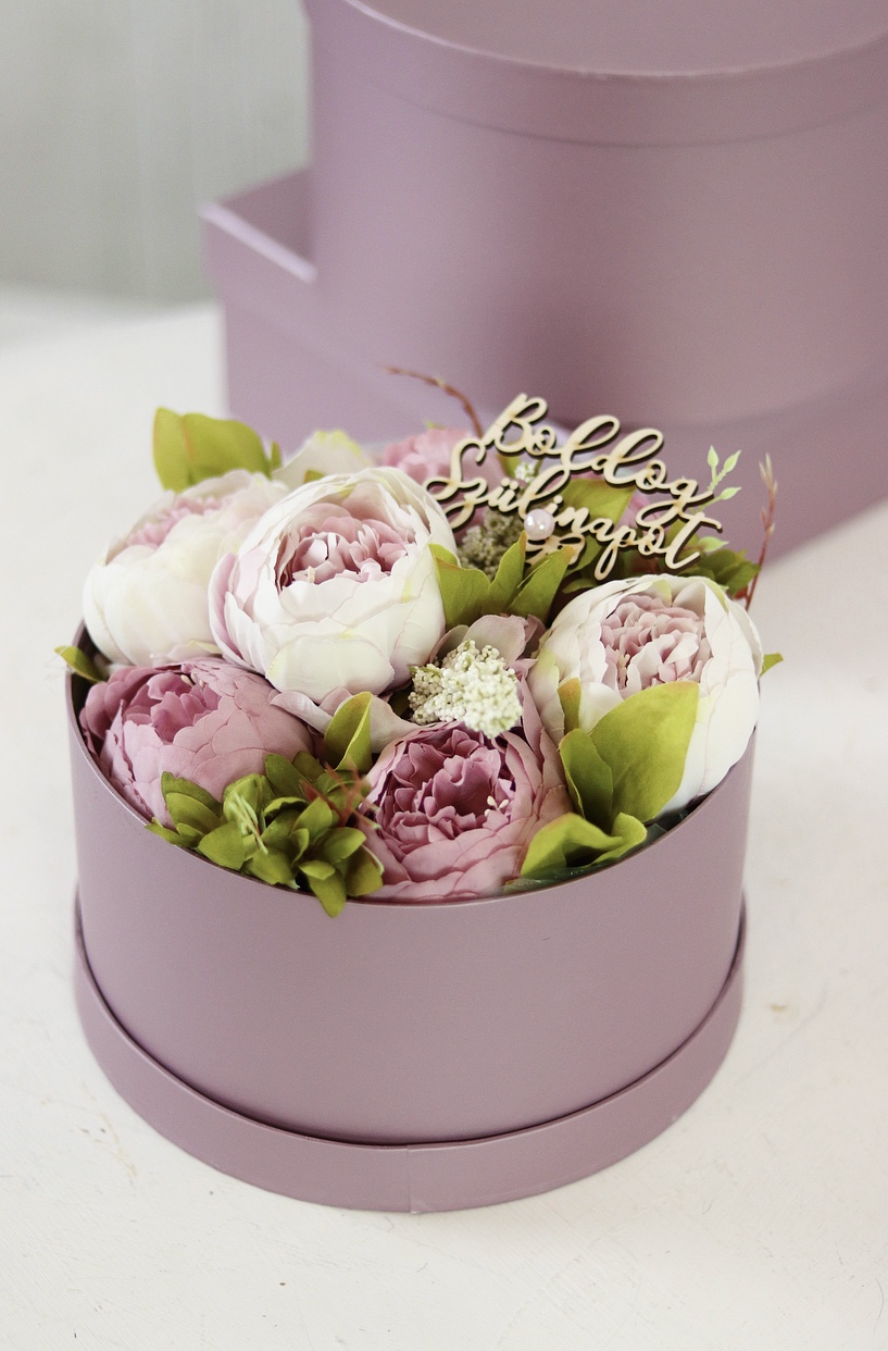 A legdrágább boxunk, amelynek ára a képen fotózott verzóban, pünkösdi rózsával: 27.000,- Ft